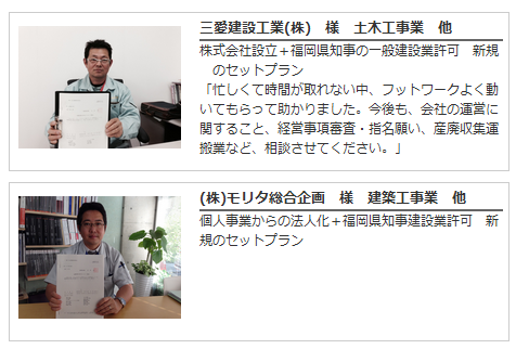 当センターホームページの「お客様のご紹介」ページへの掲載をご了承いただけたお客様には、建設業許可取得後に、営業所への掲示が義務付けられている「建設業許可票」をプレゼント致します。